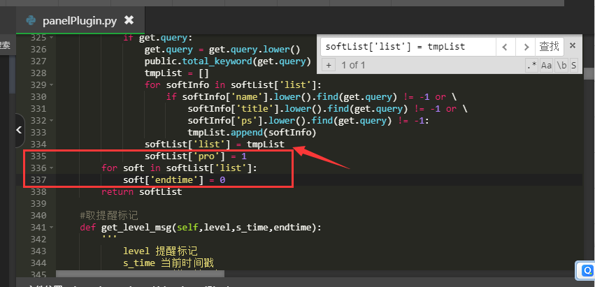 使用Ctrl+F搜索并找到softList[‘list’] = tmpList这段代码,在其下方添加如下代码: