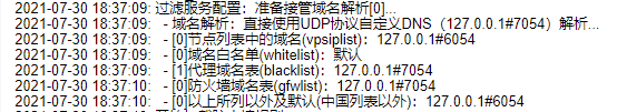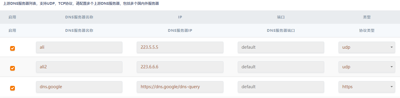 已默认dns.google和IP(8.8.8.8,8.8.4.4)走代理表,若没有请自行添加。若有其它国外DNS,也一并添加到表内。