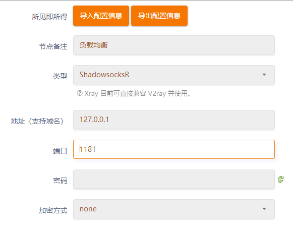 其类型、密码、加密方式等,必须与“负载均衡”中的所有节点一模一样!否则无法工作。